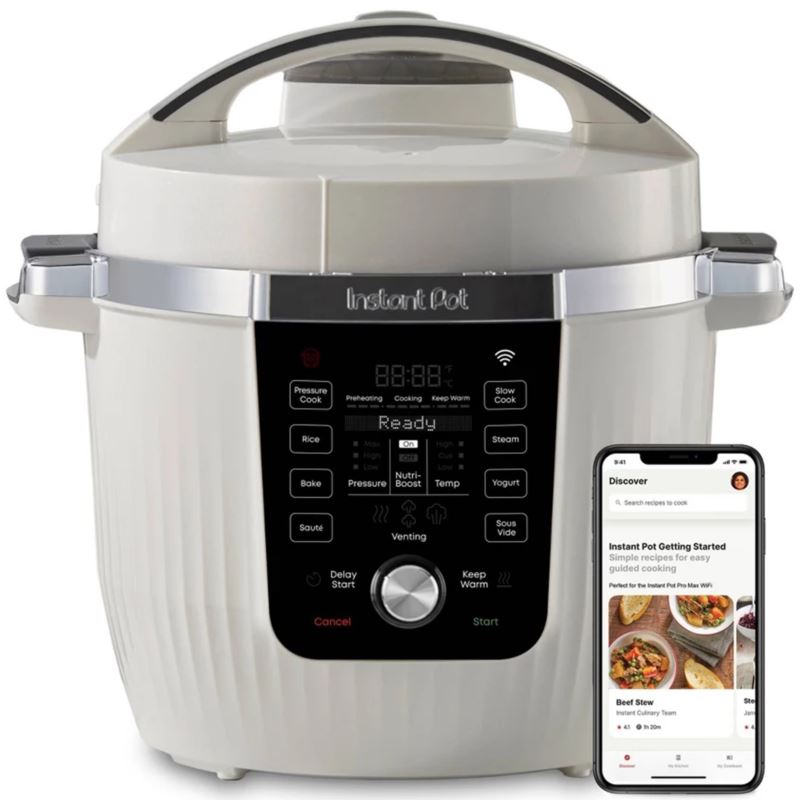 The Instant Pot Pro Max makes cooking effortless – and a little futuristic. With built-in Wi-Fi connectivity, you can control and monitor your cooking straight from the Instant Connect App, following over 2,000 interactive recipes with step-by-step guidance. The pearl-white fluted design is a countertop showstopper, while 20 percent more power means faster preheating and golden browning. A tri-ply stainless-steel pot ensures even heating, and Nutriboost pulses bring your rice, soups, and risottos to perfection. With WhisperQuiet steam release and real-time status updates, cooking has never looked – or felt – this good.